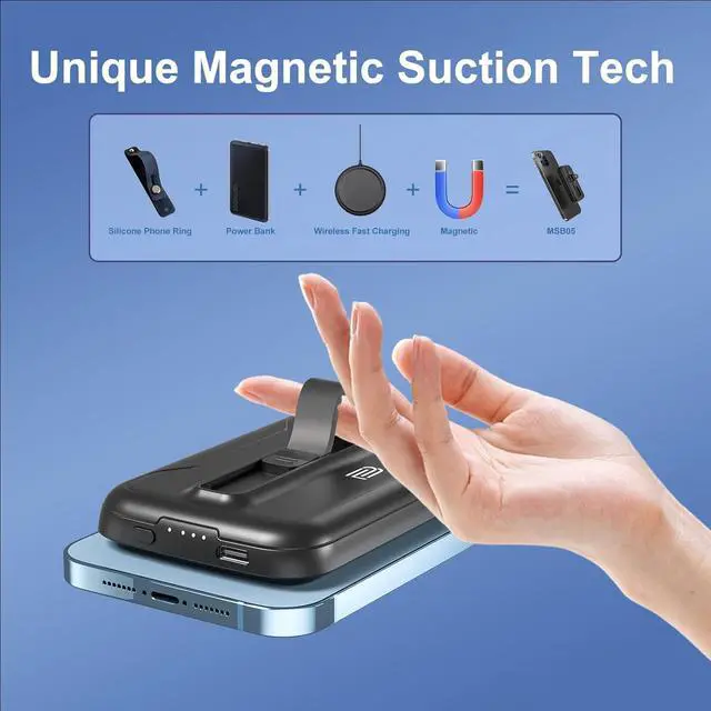 3 in 1 Multi-function Wireless Power BankMagLoop new upgraded wireless power bank is a multi-function charging of 5000mAh Power Bank + Wireless Charger + Magnetic Adsorption. Just attach it to the back of your phone to achieve fast wireless charging and free your hands. Especially for iPhone 13/iPhone 12, wireless charging with unique Mag*Safe tech, no need to take cables anymore.