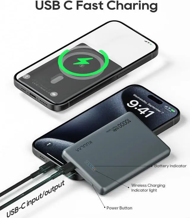 What you get1 * Kuulaa Magnetic Wireless Power Bank, 1 * USB-A to USB-C cable, friendly customer service. If you have any questions, please feel free to contact us.
