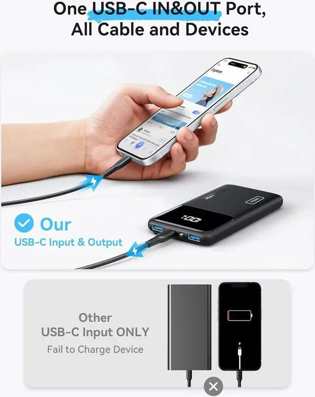 4 & Unlike most chargers featuring a USB C input only, INIU portable phone charger iphone has a USB C In & Out port to perfectly fit your new iPhones, iPad and all upcoming USB C devices.