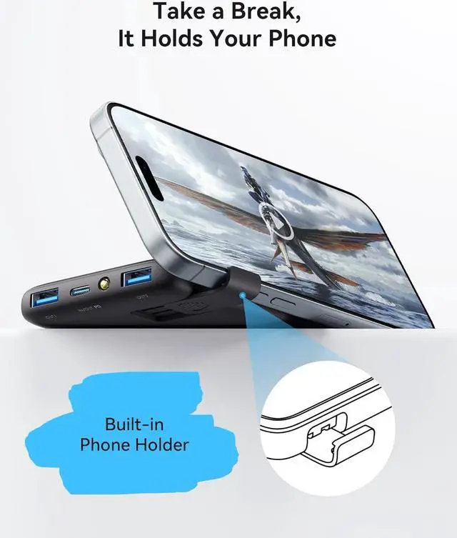 The slim but powerful INIU 10, 000mAh portable charger can provide Samsung S8 with 2.0 charges, iPhone 8 with 3.3 charges, AirPods Pro MagSafe Case with 11.5 charges, and iPad Mini 3 with 1.0 charges.
