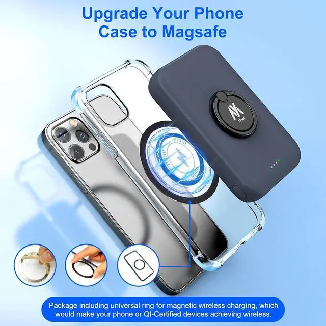 POWERFUL MAGNETIC: This portable phone charger with strong magnet suction, which can hold your device firmly. apple 13 and 12 series can be attracted by magnetic force directly, other QI-enabled device need to be used together with a magnetic ring we provided.