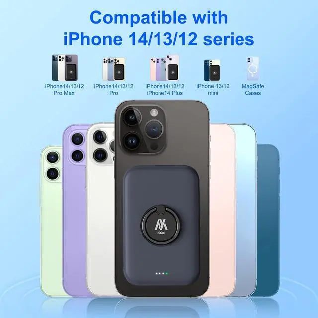 DESIGN FOR IPHONE 14&13 SERIES: Wireless portable charger compatible with iPhone 14/13, iPhone 13 mini, iPhone 14/13 Pro, iPhone 14/13 Pro Max, iPhone 12, iPhone 12 mini, iPhone 12 Pro, and iPhone 12 Pro Max (Only compatible with QI-certified phone or magsafe cases).