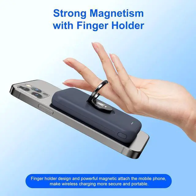 LIGHTWEIGHT AND FINGER RING DESIGN FOR PORTABILITY: Magnetic wireless charger weights 200g( 0.44 lb), the ultra-light design allows you to charge at any time and anywhere. Built in 360° rotatable finger ring holder to hold your Phone in place while charging or talking, also makes it carried conveniently.