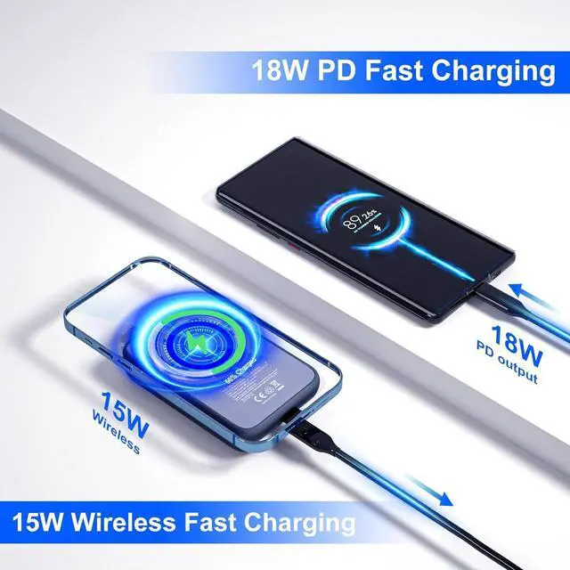 FAST CHARGING PHONE CHARGE: Up to 15W wireless output charge, this magnetic battery pack provides the fastest possible charge to smartphone. Conveniently charge your QI-Certified devices without connect cable.