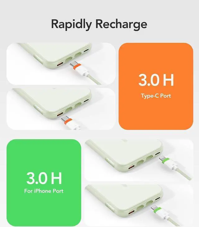 [Portable Charger with Built in Cable] Say goodbye to the frustration of searching for a charging cable! Thanks to the convenient built-in Type-C to iPhone cable, you can now effortlessly connect and charge your iPhone devices or Android devices. What's more, both the Type-C cable connector and the iPhone cable connector support input and output, making charging and recharging flexibility and convenience.