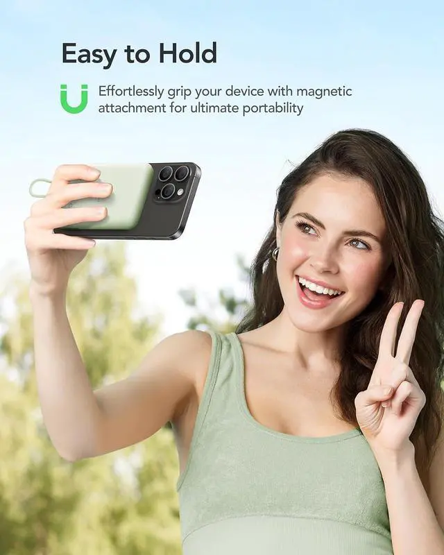 [Magnetic Attachment] Slim Portable charger can easily attach to magnetic phones or magnetic phone cases, with this innovative design, you can now charge and take photos with just one hand, freeing up your other hand for other tasks.