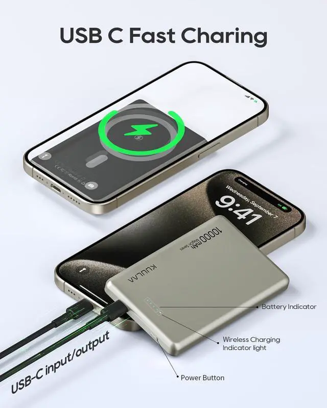 What you get1 * Kuulaa Magnetic Wireless Power Bank, 1 * USB-A to USB-C cable, friendly customer service. If you have any questions, please feel free to contact us.