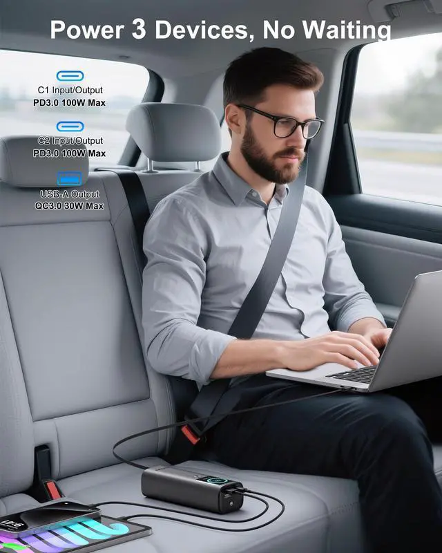 Note: 20,000mAh is the battery capacity. The average energy loss on the market is 30% to 45%. By upgrading the components, we have controlled it to 20%-40%, so a full charge will provide 12,000 - 16,000mAh. Because the product has a large capacity, please use an adapter of 20W or above to charge.