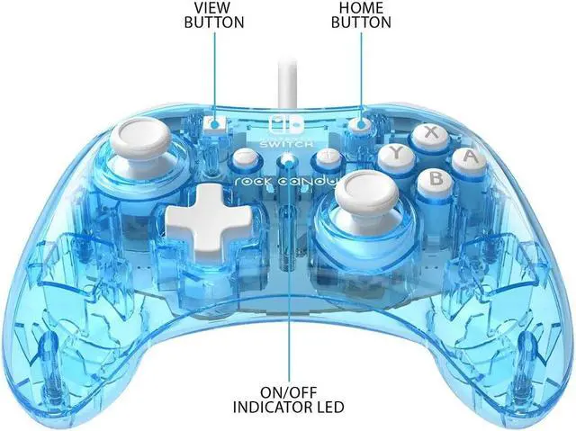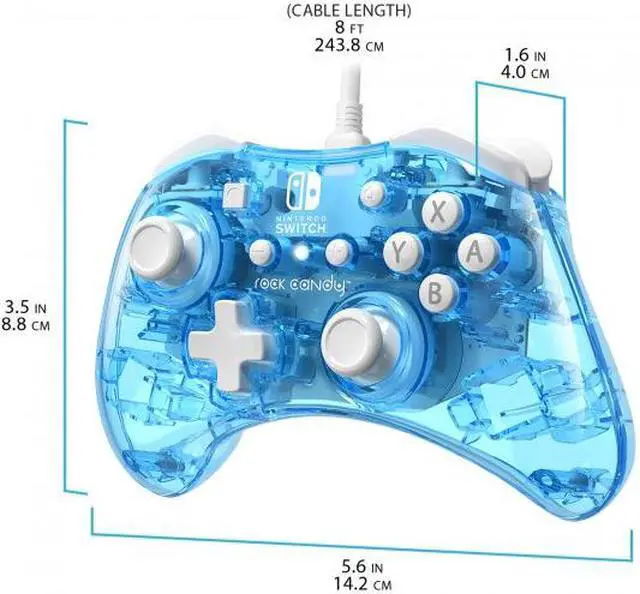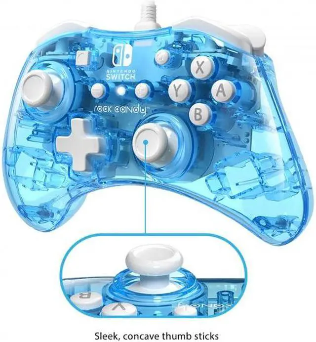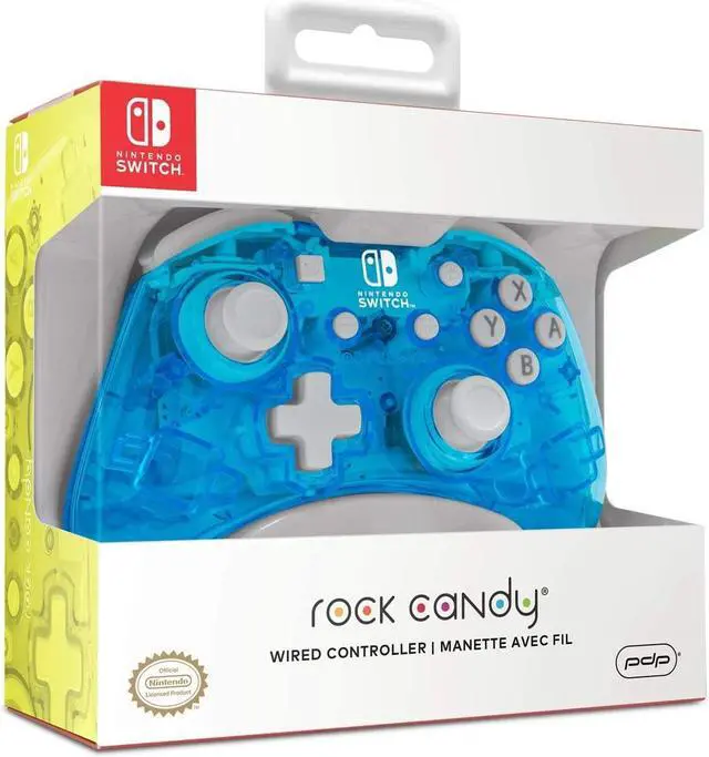 Pick your flavor with the rock Candy wired controllers for Nintendo Switch! Get the sweetest controller on the market in new, even more vibrant colours. Express yourself and choose your favourite! These vibrantly colored controllers feature clear polycarbonate shells that allow you to see into the controller's inner circuitry, while the brilliant white accents help make your controller Stand out! The new size of the rock Candy wired controller makes them more ergonomic to fit hands, of all ages, more comfortably. The detachable 8-foot cord gives you plenty of room to play, while the concave analogue sticks are designed for optimal precision.