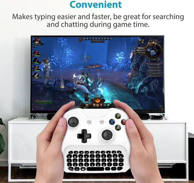 Features: *Suitable for Xbox One/S/X controller *With 47 keys, number 0-9, 26 English letters and some symbol. *Provide chat capabilities while maintaining game play functionality. *It is very easy and convenient to input emails and instant messages. *It is really a perfect combination of the wireless controller and the keyboard. *The keyboard draw power from the wireless controller directly, there is no need to charge it with a charging cable. *This keyboard adopts 2.4G wireless protocol to transfer data, attached with a 2.4G receiver to use.