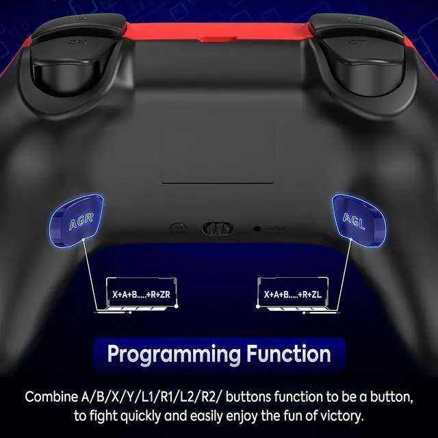 With the 6-axis gyro sensor, the switch wireless controller is capable of extremely precise speed, position, accurate control, rapid start/stop motion, Making you feel the real game experience and enhancing the game immersion. Programmable Pro Controller for Nintendo Switch/OLEDThe pro controller switch has a programming function, which means you can combine A/B/X/Y/L1/R1/L2/R2/ D-pad buttons function to be a button, improve the accuracy and speed of the game through custom rear programmable buttons, which let enemy without a reaction time, win the game quickly. 1 BUTTON WAKE-UP and ONE-CLICK SCREENSHOTThe nintendo pro controller with the wake-up function will help you connect with the Nintendo Switch console quickly through the "Home" button when the switch console stays wake-up, you dont need to pair again with Nintendo switch/ lite/new OLED game console like the first pair, the switch wireless controller supports one-click screenshot, you can upload or broadcast on social media and share your games fun when you play with your friends or followers.