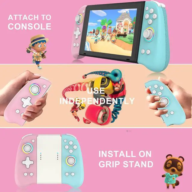 Well-designed Adjustable LED ring light of 8 different colors! This is the COOLEST joycon controller has 7-colors & rainbow LED light, plus 3 different light modes: Breathing Lamp Mode,RGB Magic Breathing Lamp Mode,Constant Light Mode Controllers.