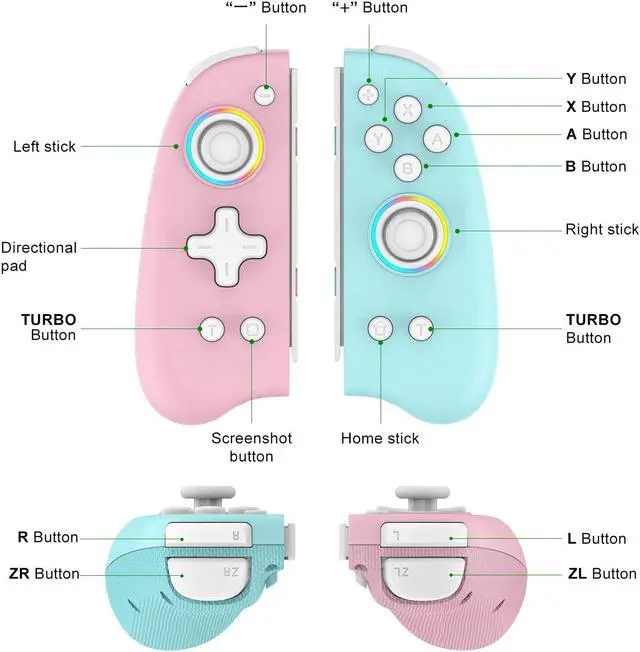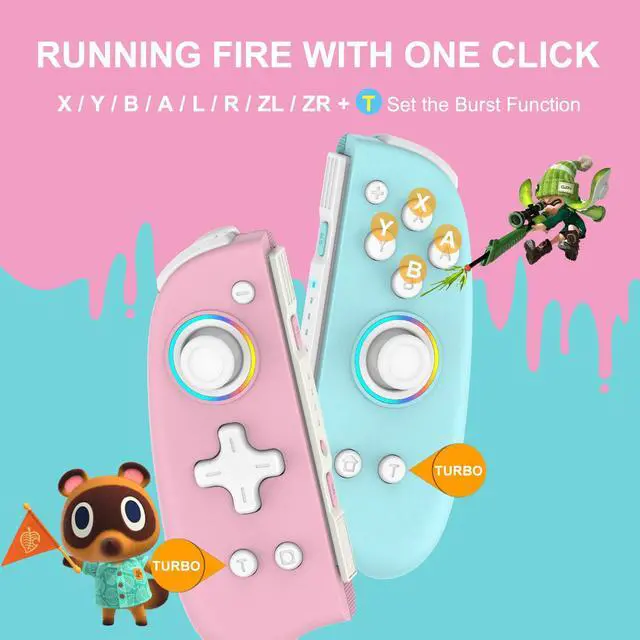 ACAMYRPG Joypad Controller for Nintendo Switch,Wireless Joy Con Replacement Switch Controller 8 Colors Adjustable RGB LED Joypad Controller with Color Light Wake-up/Turbo/Dual Shock/Vibration/Glare Gamepad Joystick Controller