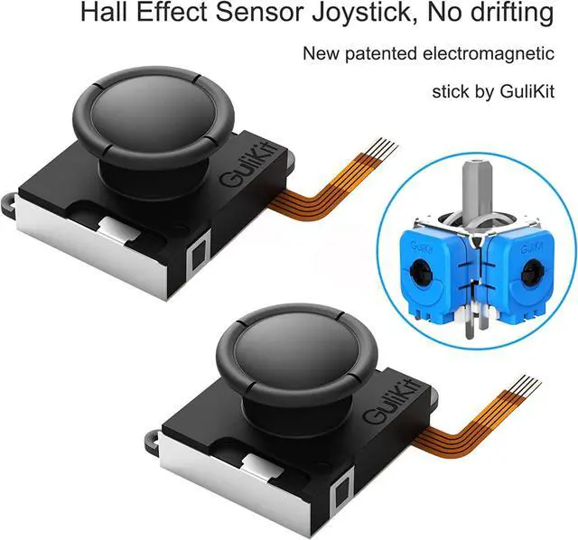GuliKit Electromagnetic Hall Effect Sensor JoystickLatest Batch: 'Click Jump' and 'Gap' had been solved. GuliKit Hall Sensor Joystick made specifically for Switch 2017, Switch OLED Model 2021 Joycon, Switch Lite; Works for Left or Right joycon controller. GuliKit joystick can solve wore, out of control, insensitive and drift analog joystick.