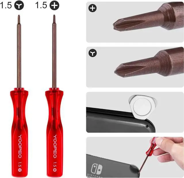 Complete Repair KitPackage Content: 2 x joystick replacement for Joycon, 18 x replacement screws, 2 x magnetic screwdriver, 1 x tweezer, 1 x Triangle Paddle (Pry Tools), 2x switch joystick caps.