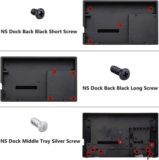 Package includes replacement faceplate shell for Nintendo Switch Dock (Dock NOT included), PH00 and Y00 screwdrivers, screws