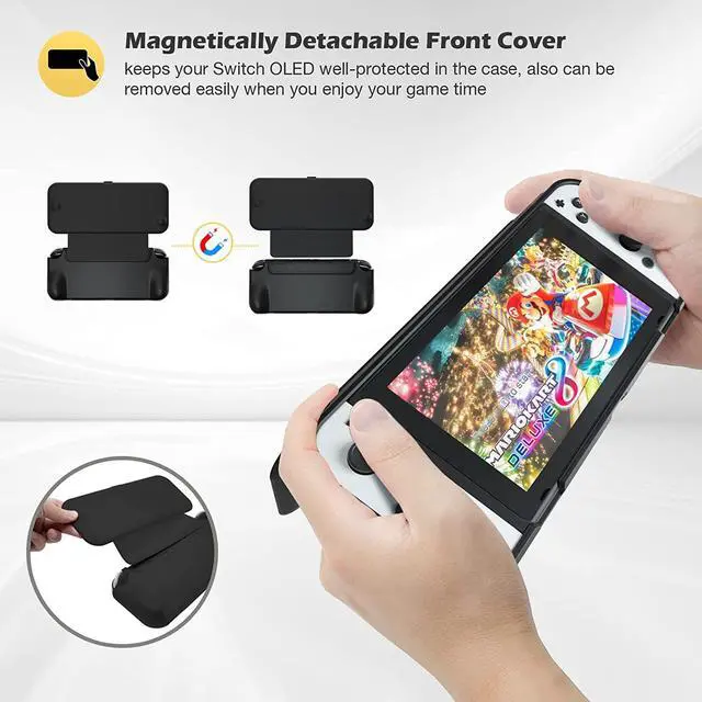 Innovative magnetically detachable front cover protects your Switch (OLED model) Joy Con Controllers and buttons and also can be removed easily when you enjoy your game time