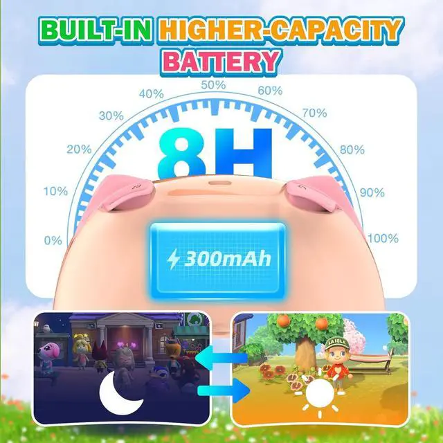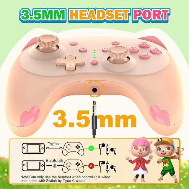 An audio port allows you to wear a headset and chat with teammates (Notice: pro controller must be plugged into switch dock). Built-in 300mAh battery lasts for 10 hours of playtime and takes 2 hours to recharge; supports charge while playing with a bundled cable. Charge it fully before first use.