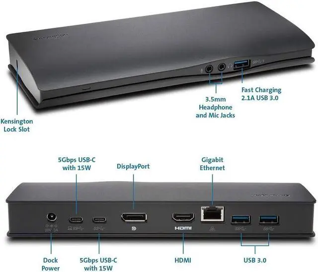 Let the leader in professional desktop performance make your transition to USB-C connectivity as smooth as possible with the SD4500 USB-C Universal Dock that works with Windows, Mac OS and Chrome OS devices. A single cable lets you quickly plug in your laptop and have instant access to all your peripheral desktop accessories, including 4K video and data transfer. Zero Footprint mounting is ideal for workstations with limited space (mount sold separately) and its Thunderbolt 3 compatible. Kensington Security Slot offers convenient way to attach a cable lock from the industry leader in physical security. Gigabit Ethernet port for wired network connectivity. Compatible with Chrome OS 44 and above, Mac OS X 10.10, Mac OS X 10.11, Windows 10, Windows 8.1