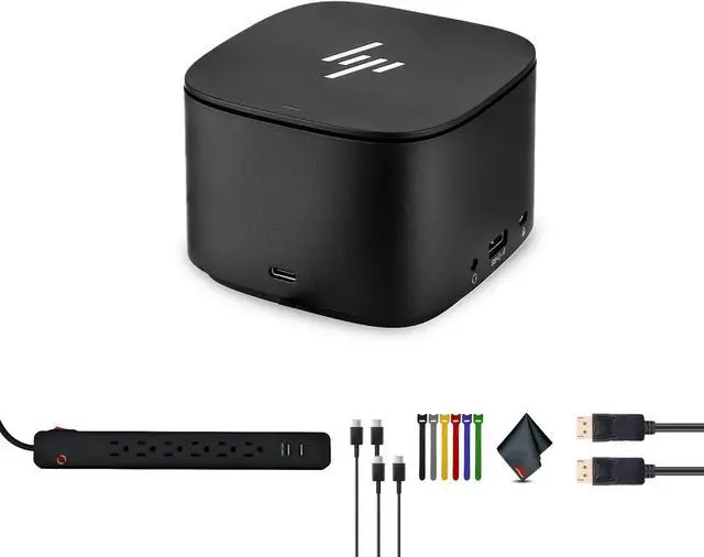 This Bundle Includes: HP Thunderbolt Dock G2 Docking Station with 100W Power Delivery, Surge Protector, 2x Type-C Cable, DisplayPort Cable, Fiber Cloth