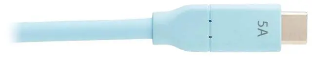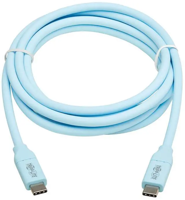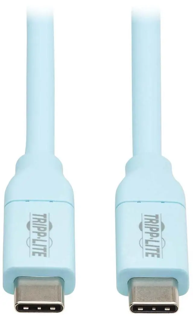 USB-C CABLE CONNECTS DEVICES FOR CHARGING OR TRANSFERRING DATA: This USB cable (M/M) is compatible with any device with a USB-C or Thunderbolt 3 port, including a MacBook Pro, iPad, iMac, Chromebook or Windows laptop. It allows you to connect your notebook computer to a docking station, your Apple or Android device to a wall charger or power bank, or an external hard drive to a PC or tablet. INNOVATIVE SOFT CABLE JACKET PREVENTS TANGLES, ALLOWS FLEXIBLE BENDS: Very flexible for convenient on-the-go connections, this ultra-soft silicone-layered jacket avoids nasty tangles in your backpack or laptop bag and feels nice to the touch. Plus, it bends easily for connecting to devices in tight spaces or around obstacles. PD CHARGING CABLE SUPPORTS UP TO 240W FOR SYNCING AND CHARGING MOBILE DEVICES: The Power Delivery cable provides power output up to 48V 5A (240W), more than sufficient for fast charging, syncing and powering most large-capacity devices, including the MacBook Pro. It is backward compatible with lower wattages, including 100W and 60W, and will communicate with the connected device to determine what level of power can be supported. This USB-C to USB-C cable also supports USB 2.0 data transfer rates up to 480 Mbps. PROVIDES EXTRA HEALTHY PROTECTION: The outside coating is constructed using medical material to keep your friends, family and coworkers happy and healthy. This added protection makes this Safe-IT cable an ideal solution for medical facilities, schools, businesses, restaurants/kitchens and anywhere else that needs extra protection. LIGHT BLUE JACKET HELPS AVOID MISIDENTIFICATION THAT CAN CAUSE COSTLY DOWNTIME: The USB cable has a light blue jacket, which is easy to identify quickly in a crowded docking station or USB hub and helps prevent the cable from becoming accidentally disconnected.
