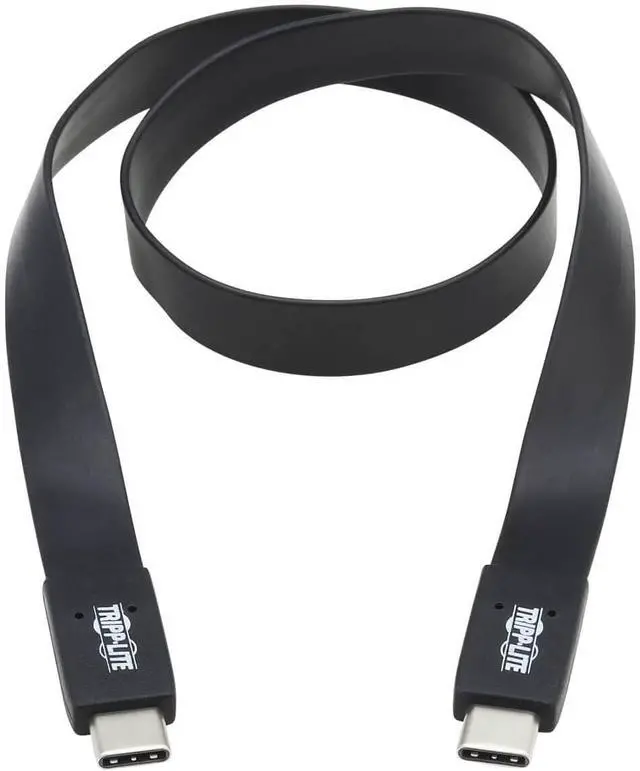 FLAT USB-C CABLE: Transfer data, and charge devices faster with USB 3.1 Gen 2. USB Type C and Thunderbolt 3 compatible cable supports USB 3.1 Gen 2 data transfer rates up to 10 Gbps. Charge devices, like tablets, iPads, and cell phones with a power output up to 2.3 amps (46 watts). Length: 3 ft / Color: Black / Connectors: USB-C to USB-C & Thunderbolt 3