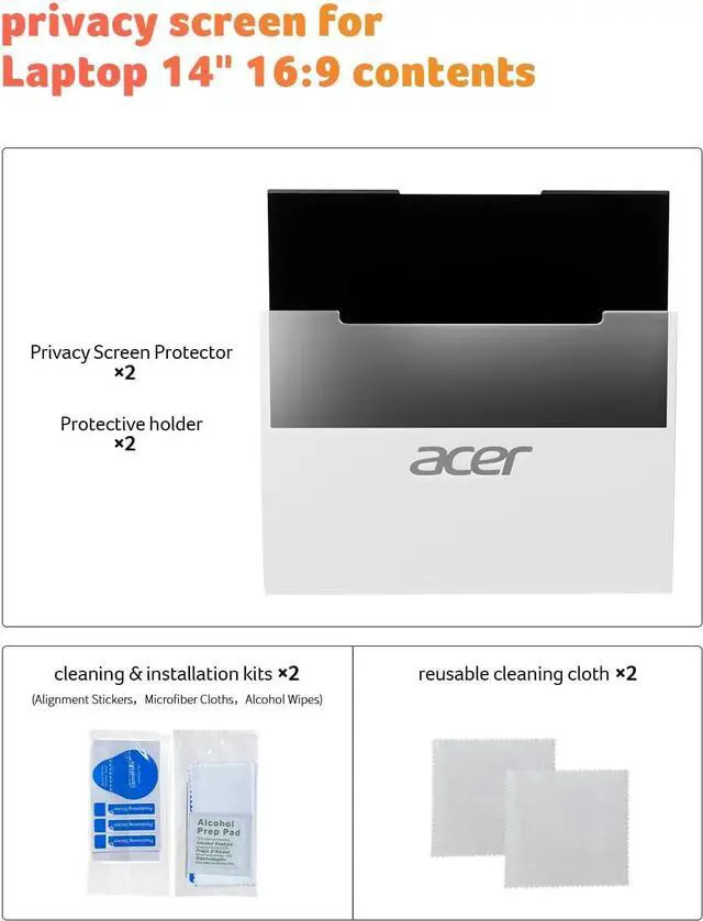 [2-Pack Privacy Screen Protector] Our premium screen privacy protector kit includes everything you need for perfect installation and maintenance: 2 high-quality privacy screen protectors (fits Laptop 14 Inch), 2 storage folders to keep your protectors safe when not in use, 2 ultra-soft reusable cleaning cloths for streak-free maintenance, 2 complete cleaning & installation kits and 2 sets of adhesive magnetic strips.