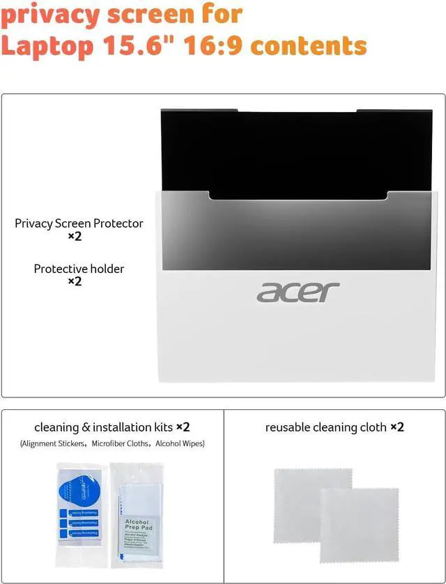 [2-Pack Privacy Screen Protector] Our premium screen srivacy srotector kit includes everything you need for perfect installation and maintenance:2 high-quality privacy screen protectors (fits Laptop 15.6 Inch), 2 storage folders to keep your protectors safe when not in use, 2 ultra-soft reusable cleaning cloths for streak-free maintenance, 2 complete cleaning & installation kits and 2 sets of adhesive magnetic strips.
