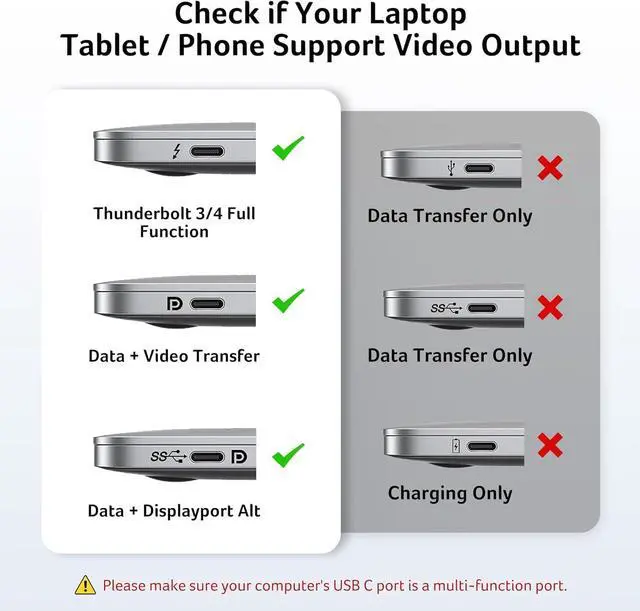 Universal CompatibilityOur docking station dual monitor is specially designed for laptops with Full-featured USB Type-C port (support Display, charging, data transfer protocol). Including MacBook Pro/Air(Mirror & Extended [SST] Modes Supported),Dell XPS13/15/17, Dell Latitude 5420,5430,5520,5530,7530,7420,7480,7400, Lenovo Yoga 720/910/920/930,Surface 5/6/7/8/9. Ideal for home and office use, maximizing productivity and efficiency. Note: The video output function needs your laptop's USB-C port to support "DisplayPort Alternate Mode".