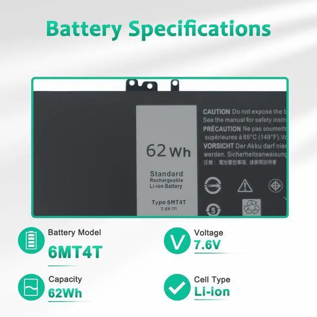• PERFECT-FIT BATTERY MODELS: Support for 6MT4T 7V69Y TXF9M 79VRK HK6DV.