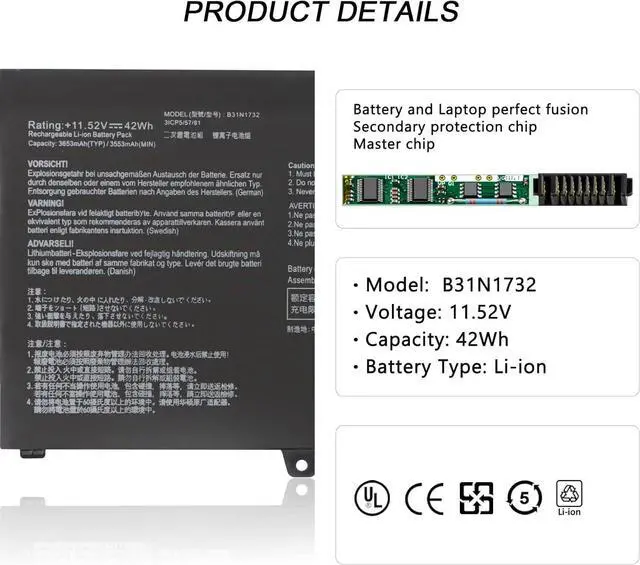 Asus B31N1732 B31Bi9H 0B200-02960000 0B200-02960400 3ICP5/57/81