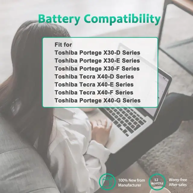 • GUARANTEED FIT THESE LAPTOP MODELS: Compatible with Toshiba Portege X30-D X30-E X30-F Series, Toshiba Tecra X40-D X40-E X40-F Series, Toshiba Dyna book Portege X40-G Series.