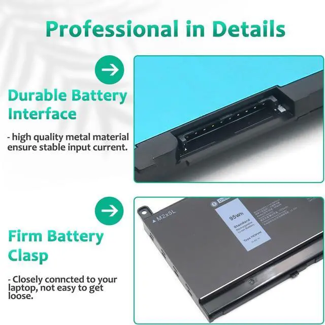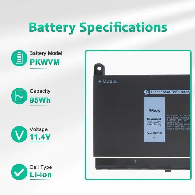LONG-LASTING BATTERY LIFE- With 11.4V capacity ( 95Wh/7922mAh ), The ( PKWVM ) battery ensures all-day power for your laptops in a factory-fresh, Never-used battery pack designed for maximum performance.