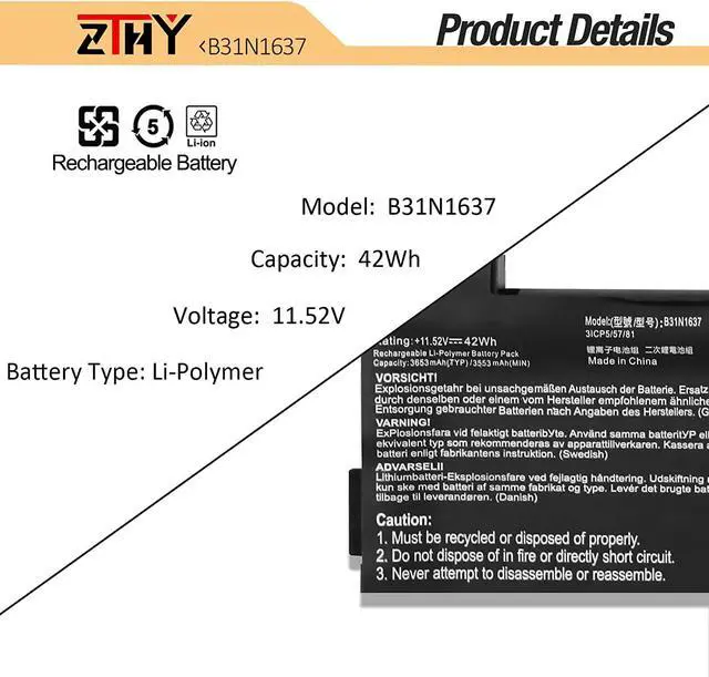 ZTHY Laptop Battery Return Policy: Rest assured with 30 days Refund and 12 months Replacement,also get our friendly customer service.