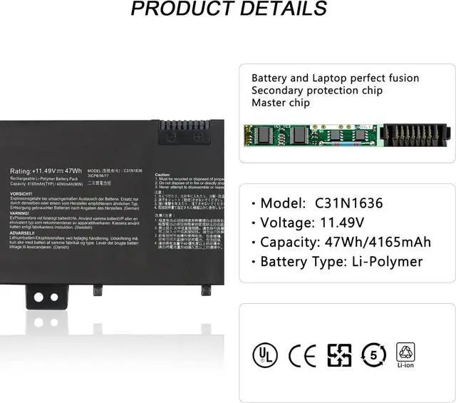 • Compatible Part Number:C31N1636 C31N1636(3ICP6/56/77) 0B200-02580000 0B200-02580100 0B200-02580200