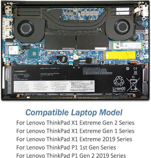 Perfect Battery Compatibility As OriginalReplacement notebook battery perfect fitFor Lenovo ThinkPad X1 Extreme Gen 2 SeriesFor Lenovo ThinkPad X1 Extreme Gen 1 SeriesFor Lenovo ThinkPad X1 Extreme 2019 SeriesFor Lenovo ThinkPad P1 1st Gen SeriesFor Lenovo ThinkPad P1 Gen 2 2019 Series[Please check your device model before purchasing]