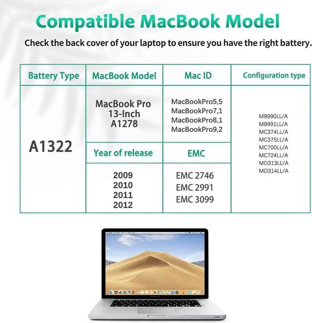 PERFECT-FIT BATTERY MODELS: Support for A1322, A1278, EMC 2554, EMC 2419, EMC 2351, EMC 2326, 661-5557, 020-6547-A, 020-6764-A, 020-6765-A, 661-5229.