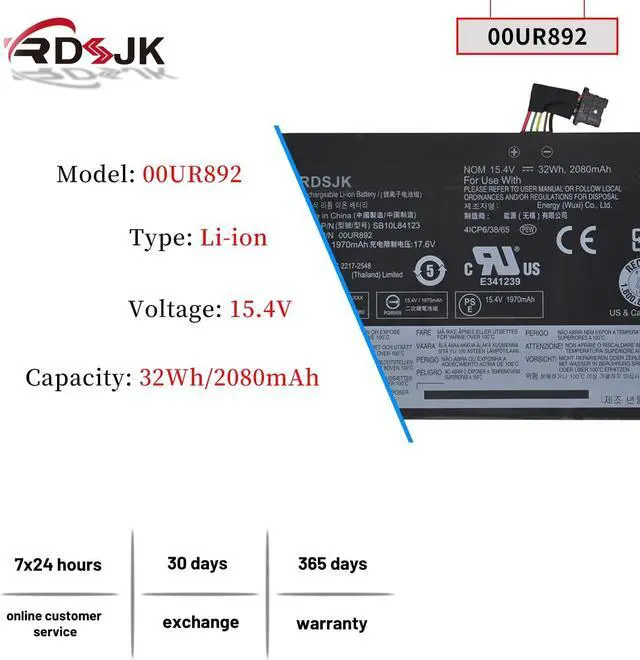 Battery Type: Li-ion; Voltage: 15.2V/15.4V/15.28V; Capacity: 32Wh; Color: Black