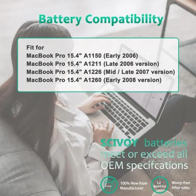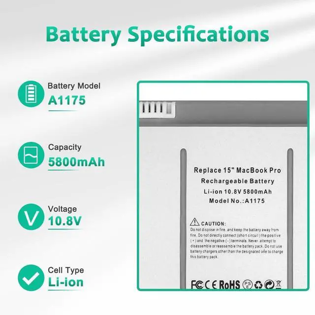 LONG-LASTING BATTERY LIFE:With 10.8V,capacity (60Wh/5800mAh),the(A1175) battery ensures all-day power for your laptops in a factory-fresh, never-used battery pack designed for maximum performance.