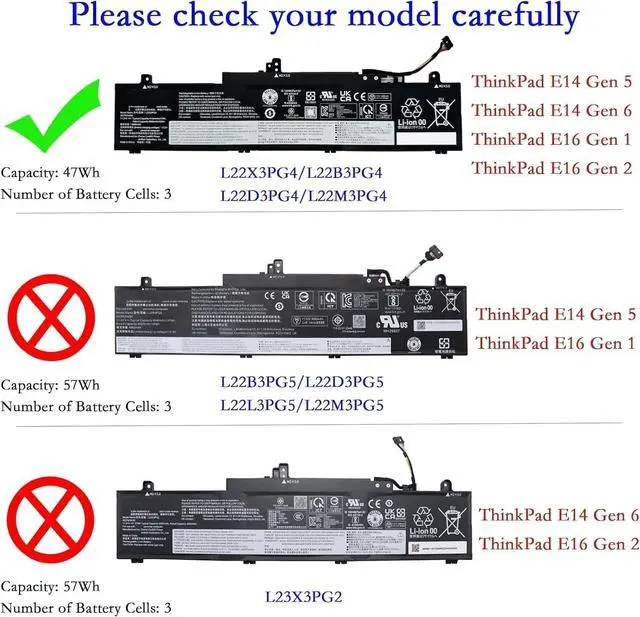 L22X3PG4 L22B3PG4 L22D3PG4 L22M3PG4 Batería de Repuesto para computadora portátil Compatible for Lenovo ThinkPad E14 Gen 5 / E14 Gen 6 / E16 Gen 1 / E16 Gen 2 Series(11.31V 47Wh)