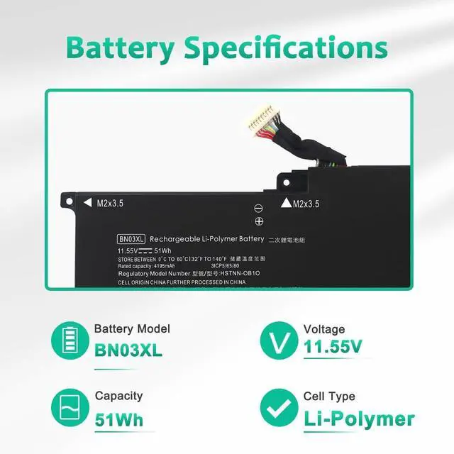 LONG-LASTING BATTERY LIFE- With 11.55V capacity ( 51Wh 4416mAh ), The ( BN03XL ) battery ensures all-day power for your laptops in a factory-fresh, Never-used battery pack designed for maximum performance.