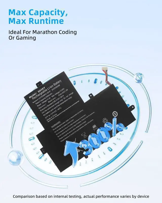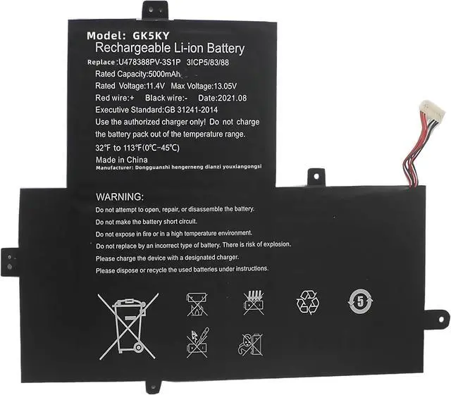 • SPECIFICATION : Model Name:U478388PV-3S1P Voltage: 11.4V // Capacity: 37Wh 5000mAh Grade A cells ensure fast charges and low power consumption; Built-in circuit protection ensures both safety and stability. Condition: 100% New; Battery life: More than 1000 cycles.