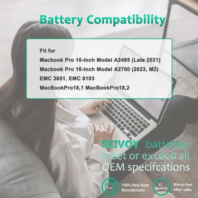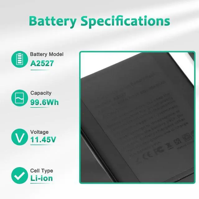 LONG-LASTING BATTERY LIFE- With 11.45V capacity (99.6Wh/8693mAh), the (A2527) battery ensures all-day power for your laptops in a factory-fresh, never-used battery pack designed for maximum performance.