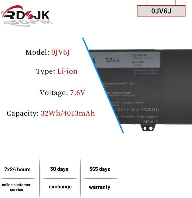 Battery Type: Li-ion; Voltage: 7.6V; Capacity: 32Wh; Color: Black