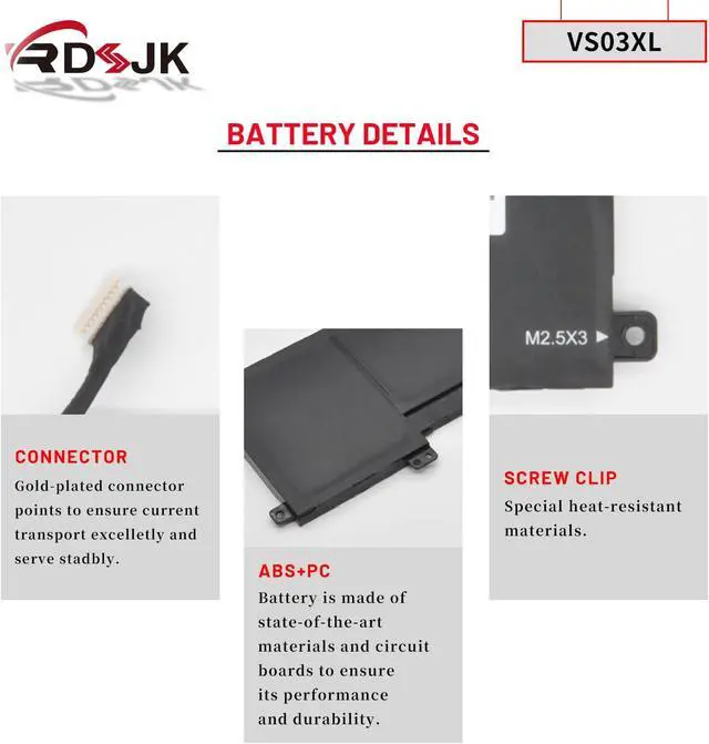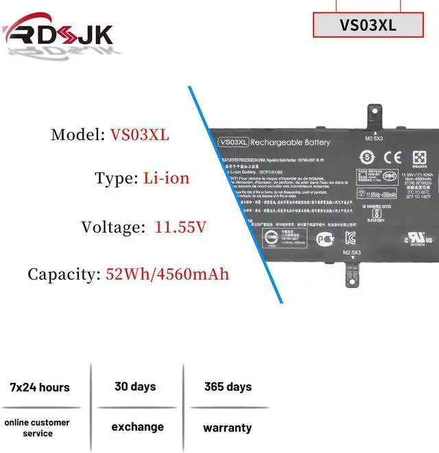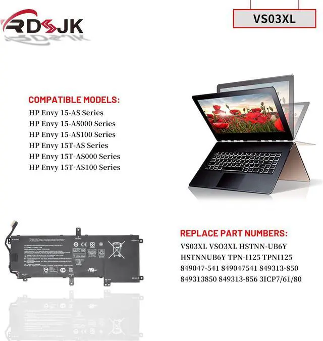 Replace Part Numbers: VS03XL VSO3XL HSTNN-UB6Y HSTNNUB6Y TPN-I125 TPNI125 849047-541 849047541 849313-850 849313850 849313-856 3ICP7/61/80