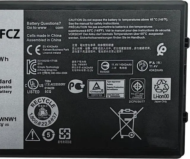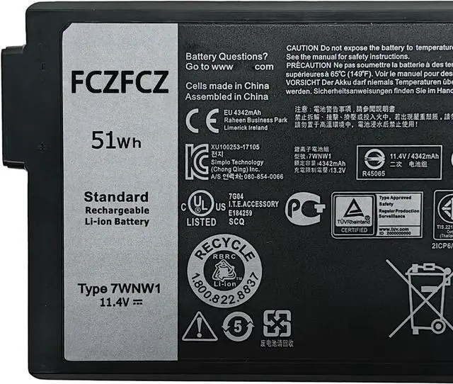 SpecificationsBattery Model:7WNW1 // Voltage:11.4V // Capacity:51Wh 4342mAh 3-Cells // Color:Black // Condition:Brand New.