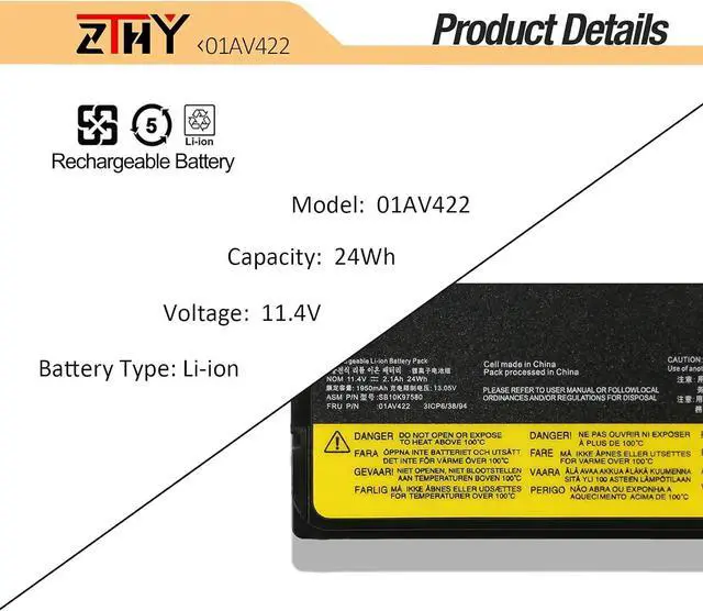 • Compatible Part Number: Len ovo 61 01AV423 4X50M08810 01AV422 SB10K97579 SB10K97580 01AV424 SB10K97581 01AV452 SB10K97597 01AV490 Laptop Battery.