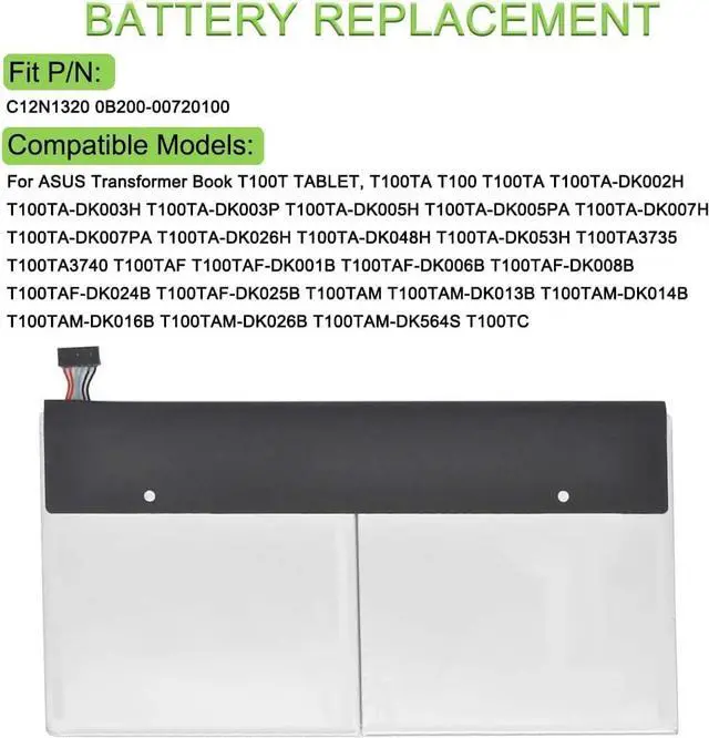 3.8V 31Wh 8100mAh C12N1320 Replacement Battery Compatible for ASUS Transformer Book T100T Tablet 0B200-00720300