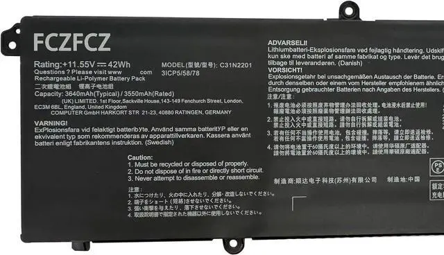 SpecificationsBattery Model: C31N2201 // Voltage:11.55V // Capacity:42Wh 3640mAh // Color:Black // Condition:Brand New.