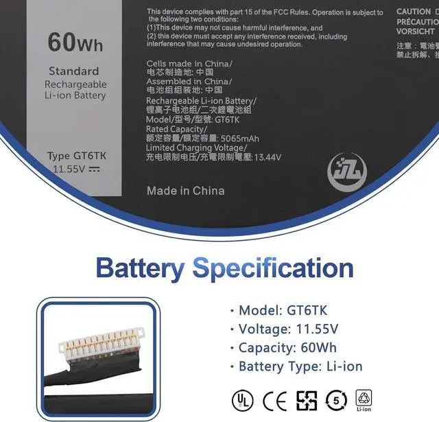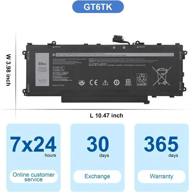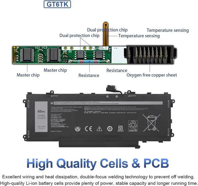 11.55V 5065mAh/3-Cell 60Wh GT6TK K2CPY 0K2CPY MWK05 0MWK05 Batería de Repuesto para computadora portátil Compatible for Dell Latitude 9440 9450 2-in-1 Series